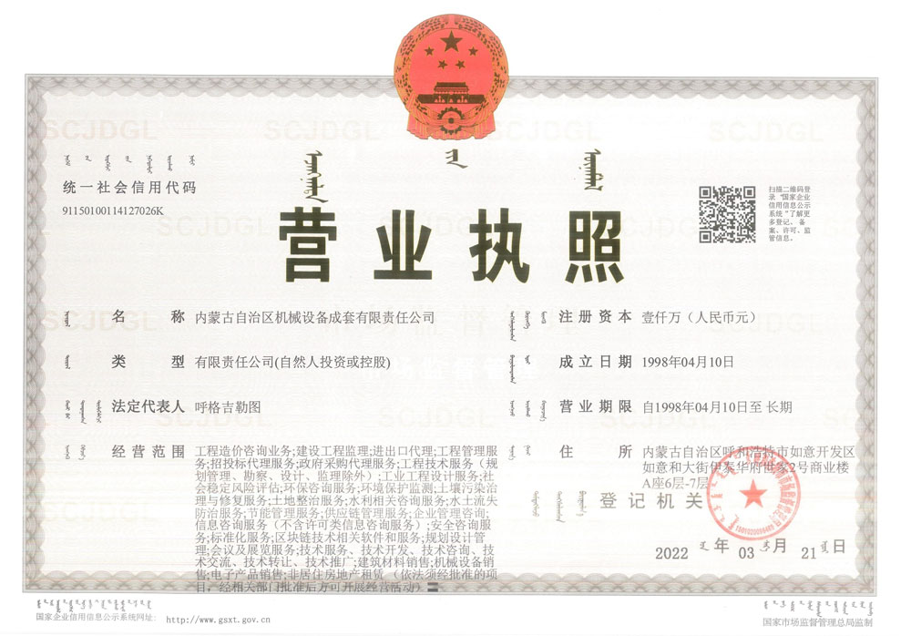 內蒙古成套項目管理咨詢有限責任公司營業執照